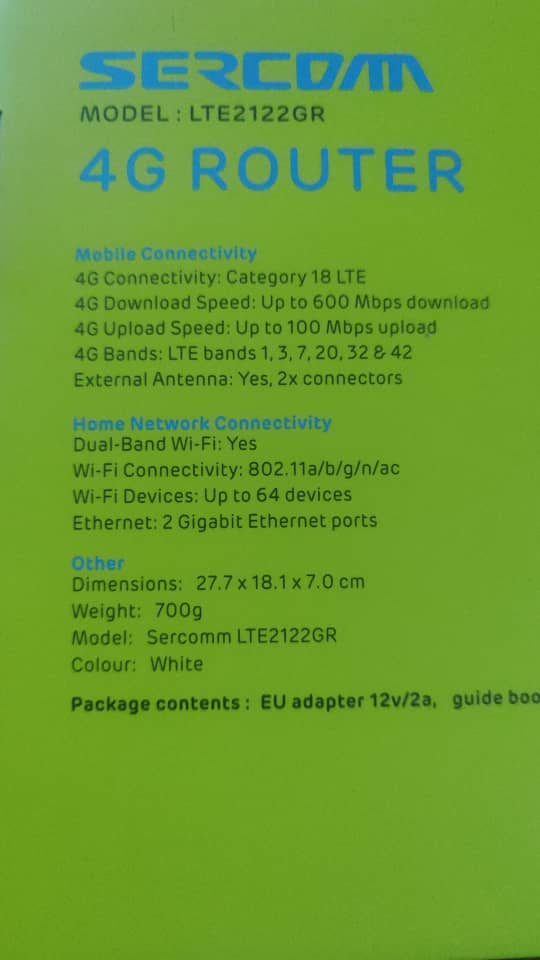 متاسفانه این کالا در حال حاضر موجود نیست. میتوانید از طریق لیست بالای صفحه، از محصولات مشابه این کالا دیدن نمایید.مودم 4.5G رومیزی سرکام مدل LTE2122GR با قابلیت پشتیبانی از Cat18 از بروزترین تکنولوژی روز دنیا بهره می برد. این مودم از سیمکارتهای 4G , 4.5G , TD-LTE پشتیبانی می کند .اگر به دنبال مودمی هستید که با همه سیمکارتهای کشور کار کند و از شبکه 4.5G هم پشتیبانی کند ، قطعا این مودم بهترین گزینه می باشد. سرعت دانلود این مودم 600Mbps و سرعت آپلود آن 100Mbps می باشد. وای فای این مودم دوال باند بوده و به صورت همزمان شبکه وای فای 2.4Ghz و 5.0Ghz را در اختیار شما قرارمی دهد و تا 64 دستگاه مختلف می توانند از طریق وای فای به این مودم متصل شوند. این مودم همچنین دارای دو پورت لن گیگا بایتی است. همراه با مودم دو آنتن بسیار قوی ارایه می شود که باعث افزایش قدرت سیگنال شبکه شده و بهترین آنتن دهی و بالاترین سرعت دانلود ممکن را برای شما تضمین می کند.